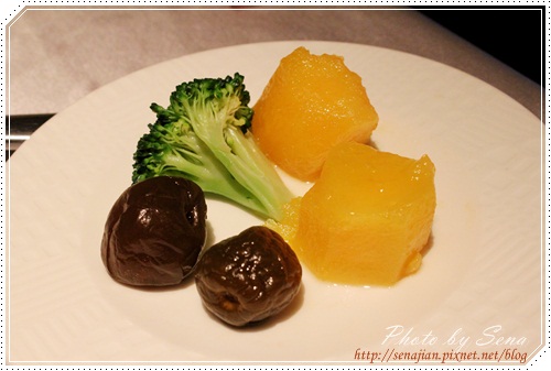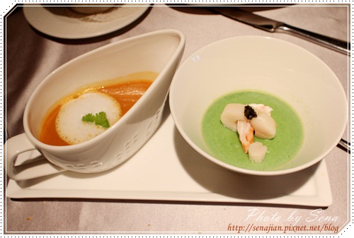 老公選松露海鮮濃湯,喝了一些濃湯後,湯可淋上翡翠蒸蛋,和著裡頭的鮮蝦與干貝一起吃,可以喝到兩種不同的口味。
