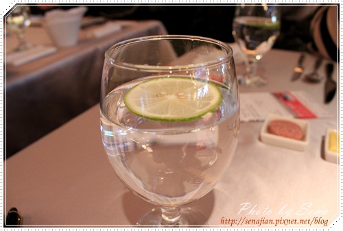 服務生遞上新鮮的檸檬水,一人一杯,邊點餐邊解渴。