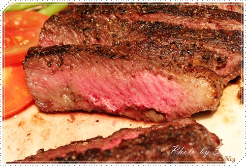 老公點的是玫瑰鹽佐酥烤牛小排,牛肉來自美國,搭配海鹽品嘗原味牛肉,直接吃到牛肉的油汁,比沾了佐料更好吃。