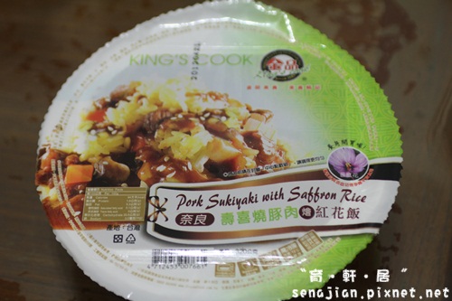 奈良壽喜燒豬肉燴紅花飯成份:蕃紅花飯、水、豬肉、洋蔥、醬油、馬鈴薯、紅蘿蔔、雞蛋、糖、芝麻。