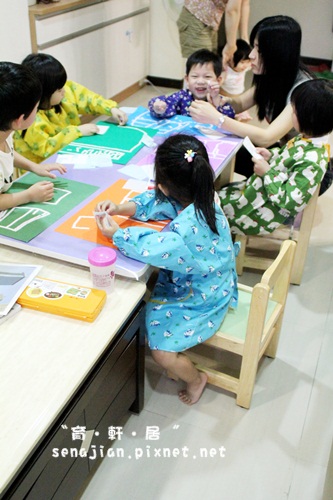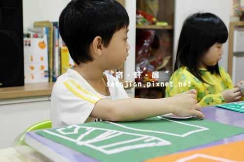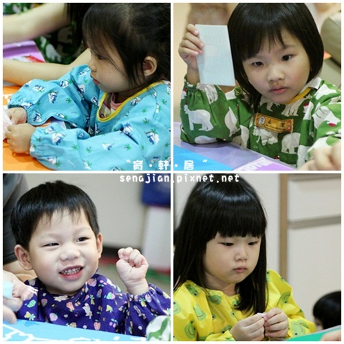 連軒加起來共有5個小朋友上課,老師會個別指導小朋友,不太會貼的,就用引導的方式協助,旁邊的小朋友還會分心地看老師怎麼教別人。