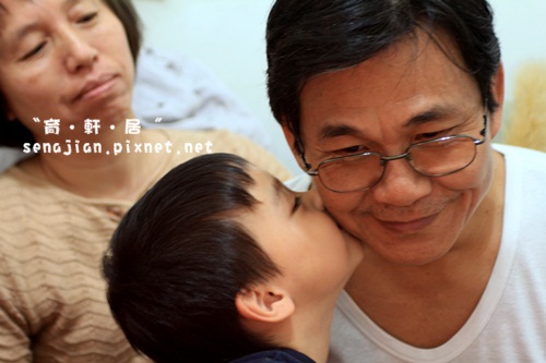 回到家,老媽買了薔薇派幫老爸慶生,開開心心的度過生日,軒賞外公一枚香吻喔!
