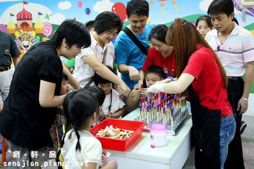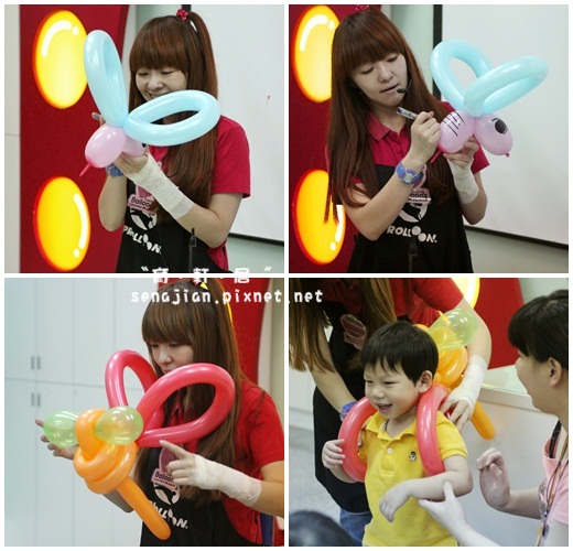 氣球在烘烤的空閒時間,草莓姊姊為大家示範造型氣球的製作方式,折氣球的技巧很高竿,讓我們都大開眼界了。