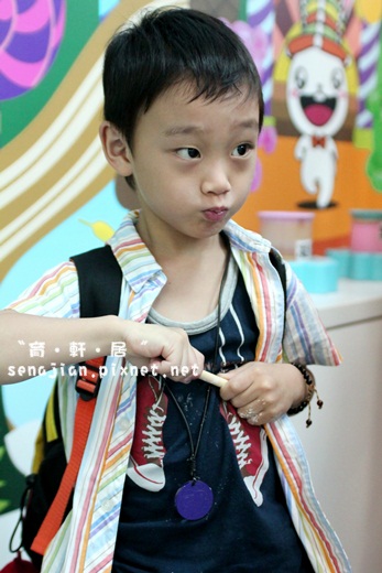 弟弟很認真的坐在原地,吉娜賞他一個餵魚寶座,光是幾顆飼料,弟弟可以慢條斯理的餵著,對男生來說,真是不容易呢!