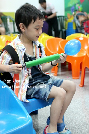 回家後軒吵著玩氣球,原本一點點的氣球被吹大後,球兒滿天飛,最頭痛的是我還不知道怎麼收,看來房間要亂個幾天了。