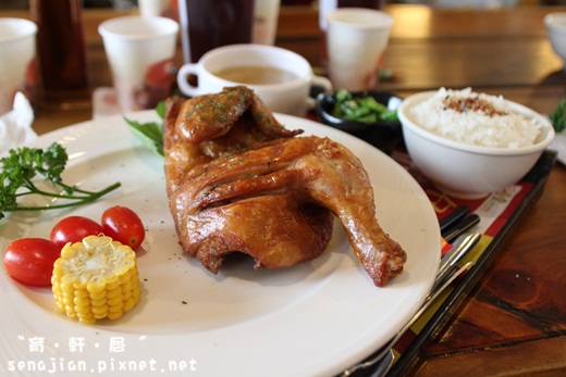 我點的是酥烤春雞,一端上來,香氣逼人,雞皮酥脆,搭配綿密的雞肉,香嫩的口感令人讚嘆,若能在附上沾醬或胡椒粉,肯定更好吃!