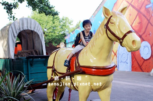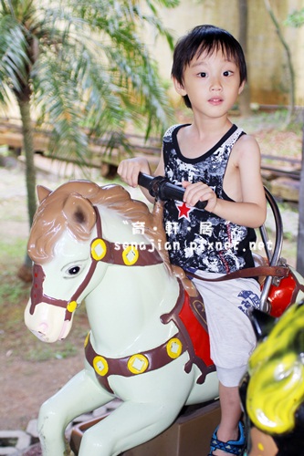 軒的年紀坐小小驛馬車,我們就不用陪同啦!自己玩得很高興,又坐了兩輪!