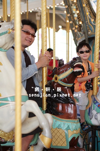 摩天篷車是小朋友的摩天輪,轉一輪就下來,老公和我都不想玩,讓軒自己去坐,交代他要乖乖坐好,等服務人員開門才可以下來,軒自己坐也很開心呢!