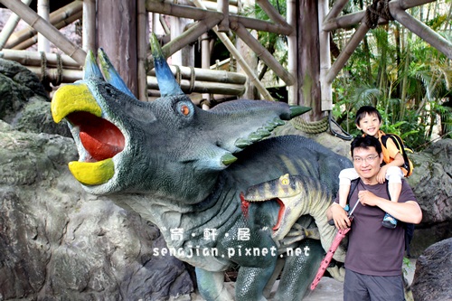 吃了半天,背起行囊往侏儸紀失樂園探險趣,軒看到恐龍又一陣害怕,直嚷嚷著好恐怖!