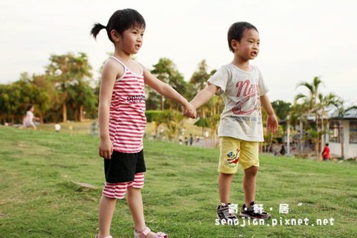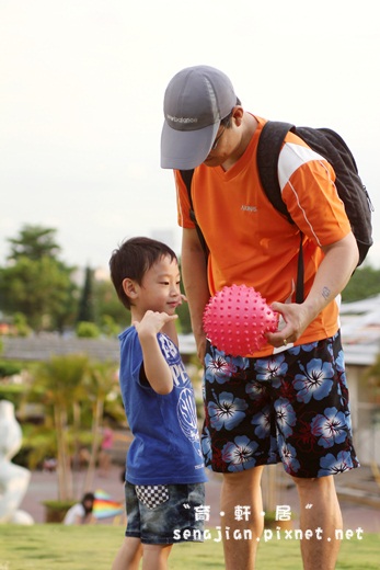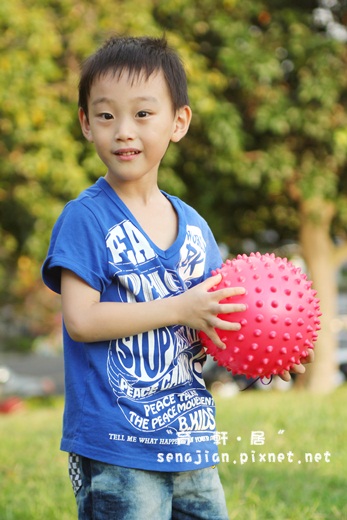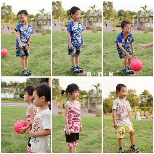 活動結束,我們一群相約在草皮上,讓小朋友們玩球, 原本是你丟我撿的遊戲,軒玩沒一會兒就跑去找別人家的小妹妹玩,對方不跟他玩,才又跑回來找漢漢。