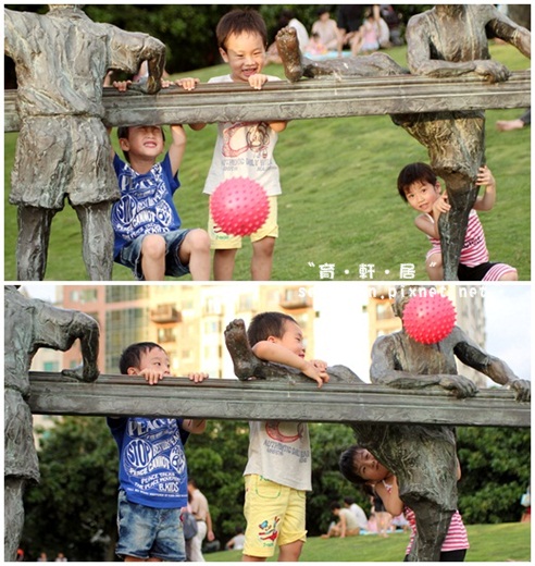 三個孩子玩耍的笑顏,代表著他們的快樂,往後再讓他們一起玩耍,以後還有機會一起成長。